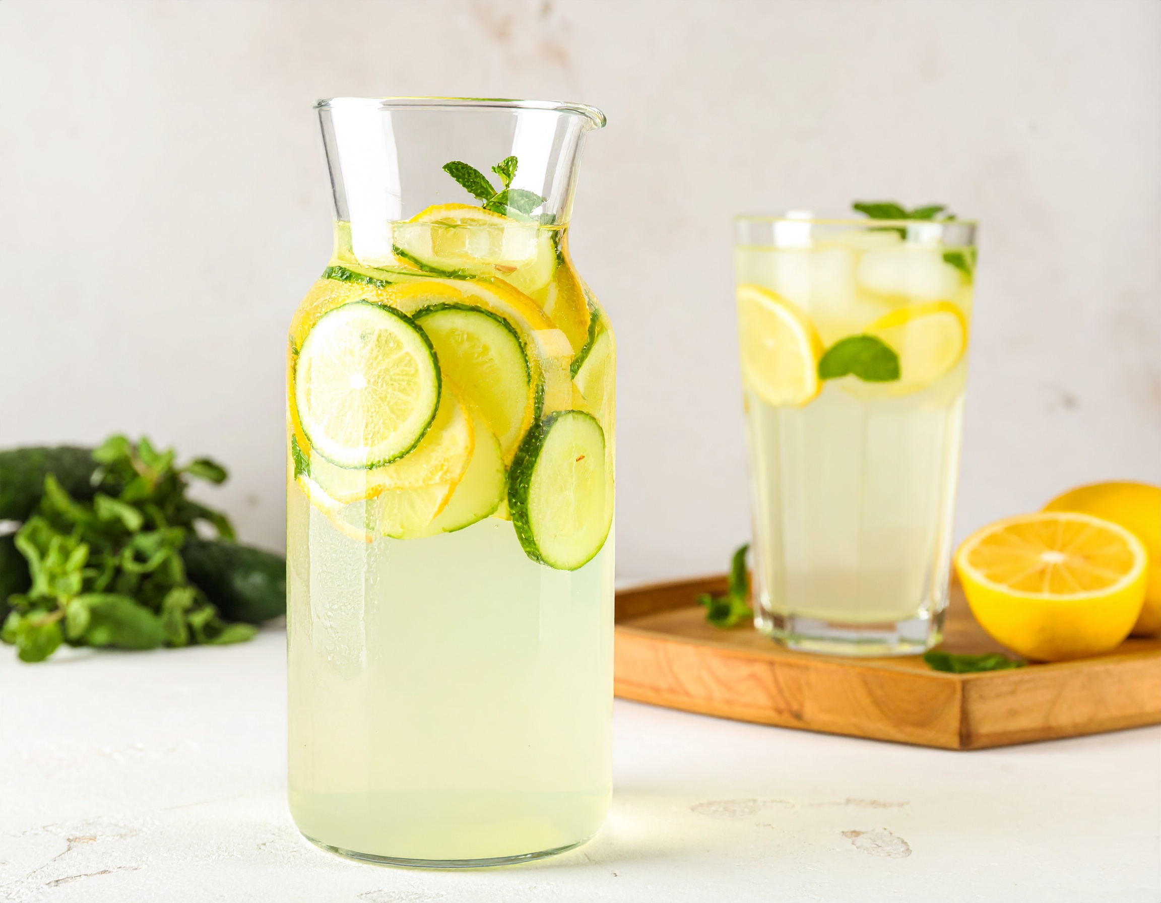 Step 3Combine the thinly sliced cucumbers, muddled mint leaves, and lemon slices in a large pitcher.